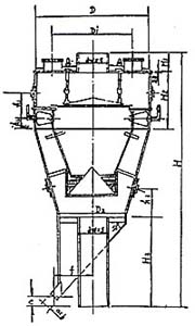 2、设备性能:采用轴向布置分离叶片,加大圆筒空间与过去径向型相比,分离效果好,改善煤粉均匀程度,减少回粉循环倍率,可以相应提高磨煤机出力,降低分离器阻力和制粉单耗。 结构特点:①增大分离器容积,降低容积强度;②轴向式折向门,开角55°③进出管流速取18-20m/s,以降低阻力;④内锥体上下口增设了密封锥体,消除Ⅰ型存在的内锥体煤粉堵塞现象⑤折向门单独调整。 3、适用条件:①设计按中等烟煤为系列设计煤种依据,推荐可适用于各种煤种(其R90=6~28%范围内);②阻力系数ζ=5~7;③煤粉细度调节系数ε>5 4、规格选择:(1)公式进选:先根据媒质,按制粉系统计算标准选定煤粉细度R90,再按公式(1)计算采用的容积强度Qtf/V,此值应在表1推荐的范围内。 |
